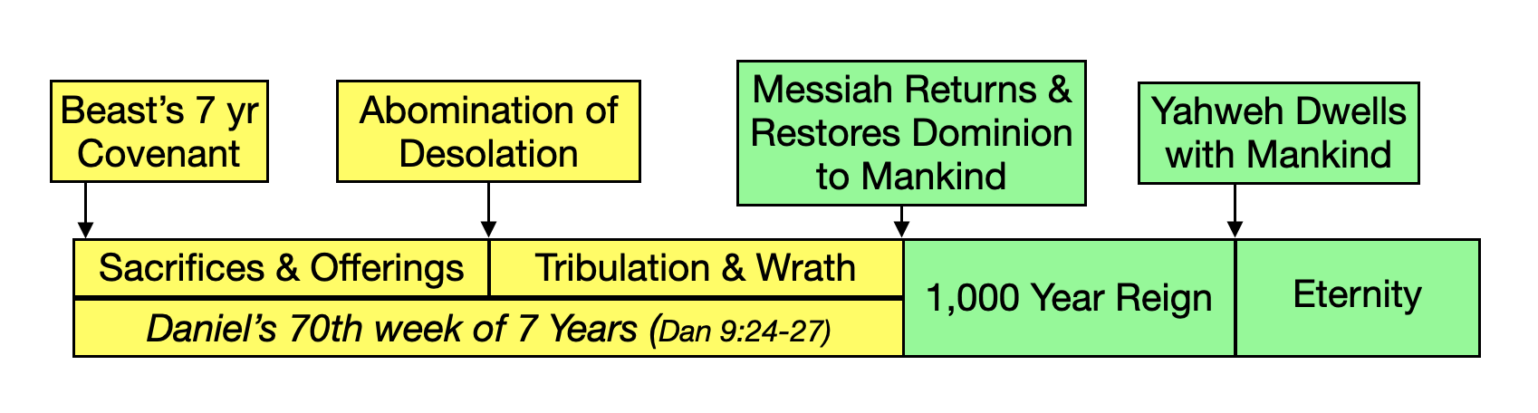 - Finally, Yahweh God Almighty descends from Heaven and dwells on earth with His People on a new Heaven and Earth forever.
